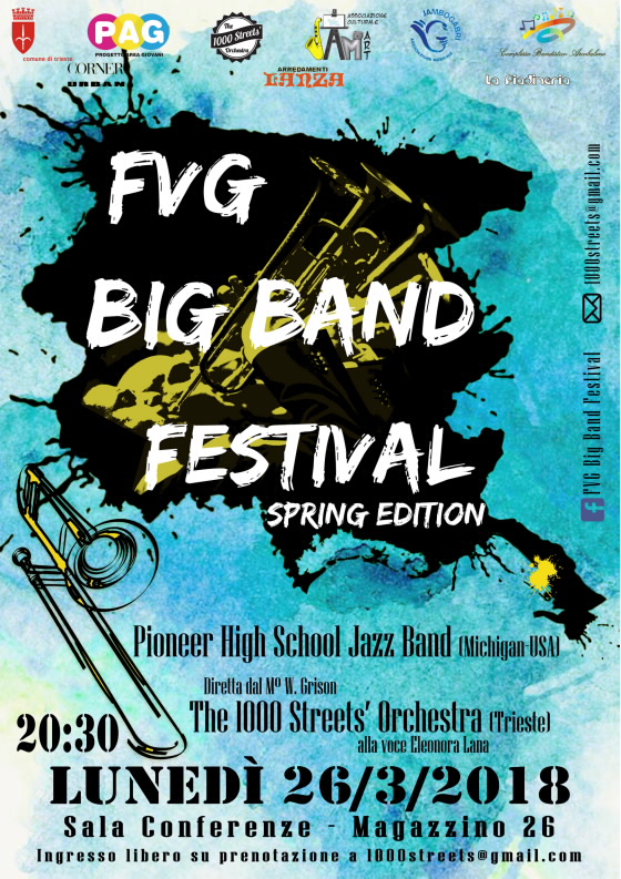 FVG BIG BAND FESTIVAL SPRING EDITION si svolgerà lunedì 26 marzo alle ore 20.30 nella sala conferenze del Magazzino 26. The 1000 Streets’ Orchestra diretti dal maestro Walter