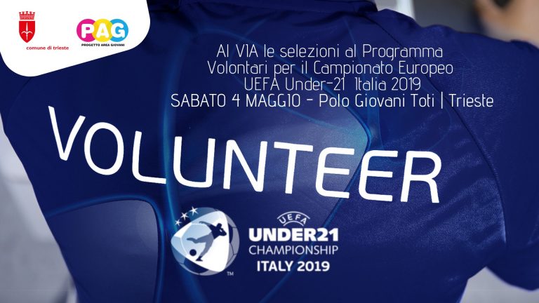 Sabato 4 Maggio dalle ore 15:00 al Polo Giovani Toti di Trieste (ingresso via Castello, 1) si terrà l’incontro con il Team Volontari per il Campionato Europeo UEFA