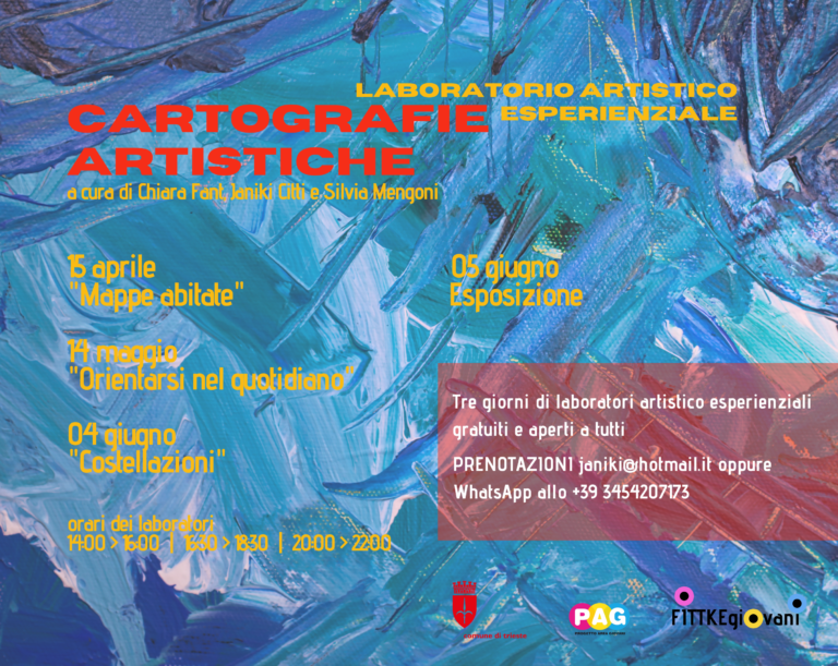 “Cartografie Artistiche” è una “tre giorni” di laboratori esperienziali che utilizzano l’arte come strumento di indagine. In ogni incontro, con tecniche artistiche diverse, verrà sviluppato il concetto di