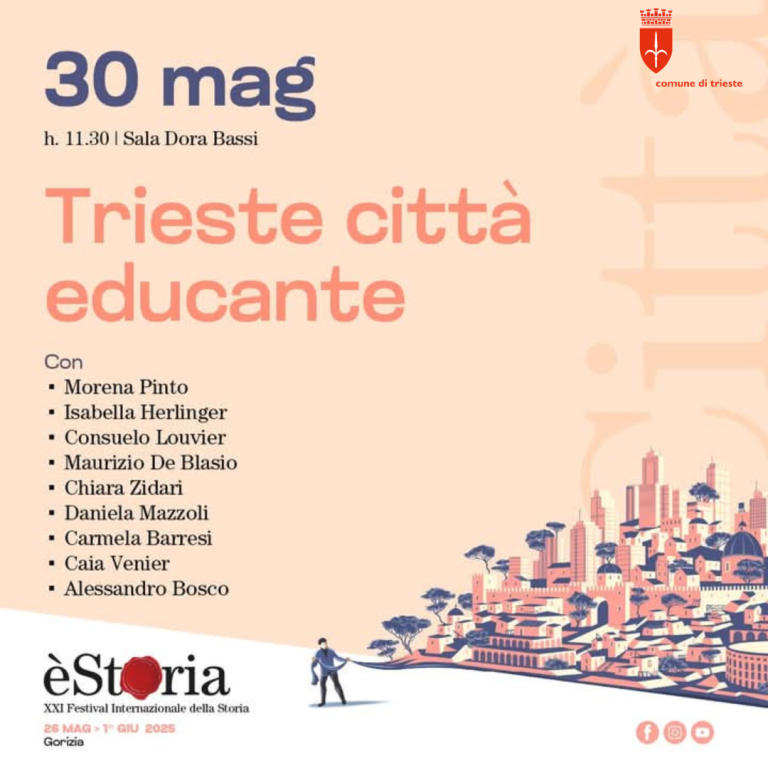 Il Comune di Trieste sarà protagonista a “èStoria Giovani” di Gorizia, presentando il progetto “Trieste Città Educante”. L’appuntamento è fissato per venerdì 30 maggio alle ore 11.30 presso la