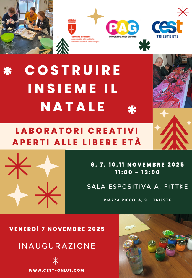 6-11 novembre – CEST ETS I giovani del Servizio Formazione all’Autonomia del CEST, associazione del Terzo Settore, propongono un laboratorio creativo per COSTRUIRE INSIEME IL NATALE: cartoline, quadretti, piccoli