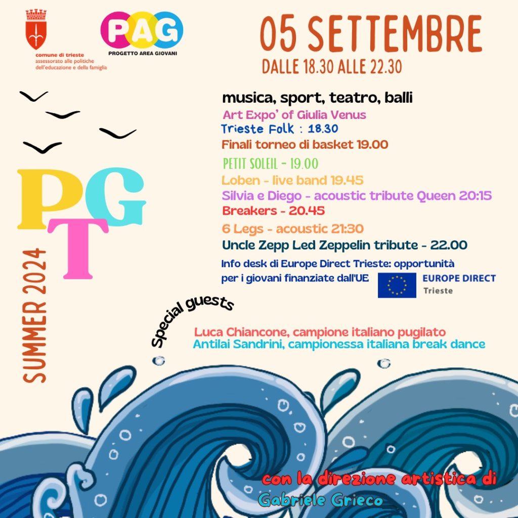 Giovedì 5 settembre si terrà l’ultima serata del PGTSummer all’insegna della musica, del teatro e dello sport.