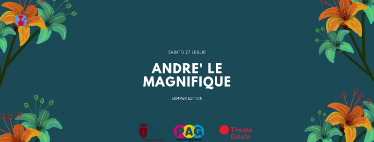 André Le Magnifique sabato 27 luglio ore 21:02 PAG – via del Castello 1 __________________________________________________ L’APS Parole Controvento, accreditata al Pag Progetto Area Giovani del Comune di Trieste,