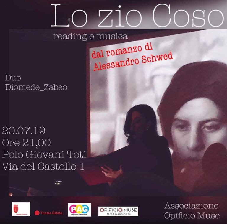 LO ZIO COSO di Alessandro Schwed_reading e musica in scena al Progetto area Giovani, Polo Giovani Toti, via del Castello 1 sabato 20 luglio alle ore 21 Duo