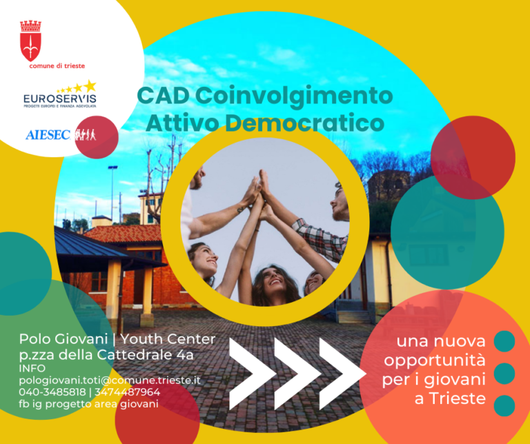 Il Comune di Trieste – Assessorato ai Giovani, in occasione dell’Anno Europeo dei Giovani 2022 e all’interno del progetto CAD Coinvolgimento Attivo Democratico, attivato grazie al bando “Fermenti in