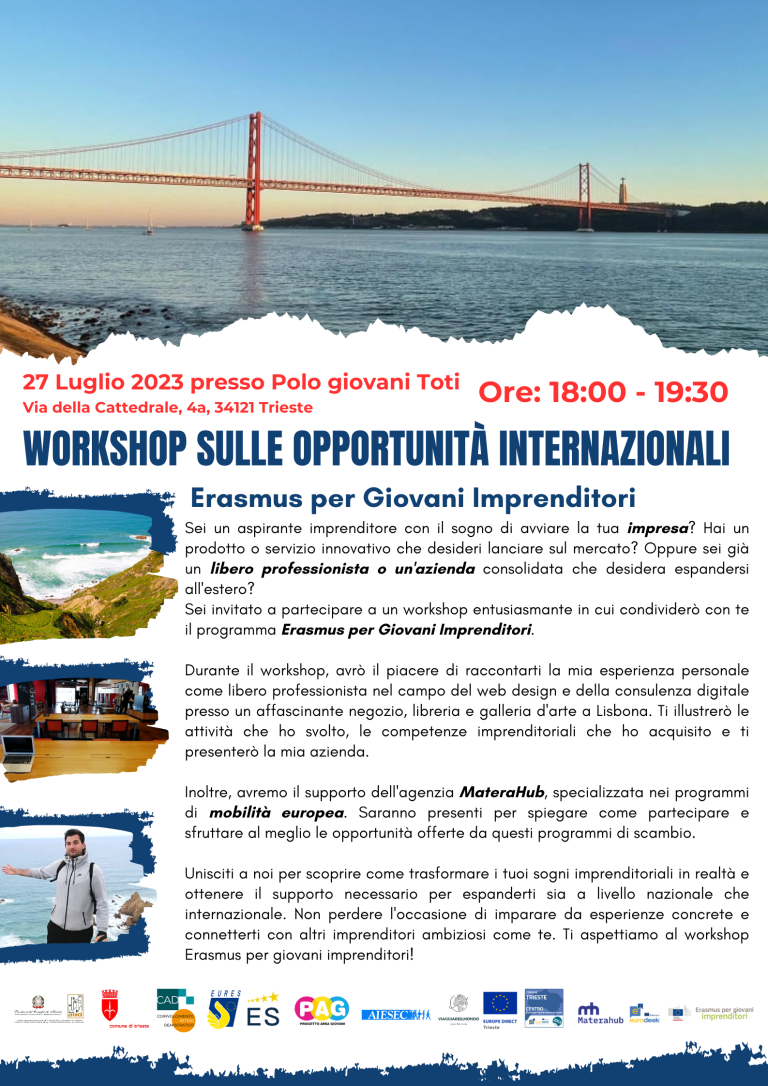 In occasione degli #ErasmusDays, il Centro EUROPE DIRECT Trieste agenzia Eurodesk e il Progetto Area Giovani, in collaborazione con Erasmus Student Network (associazione accreditata al PAG), propongono per