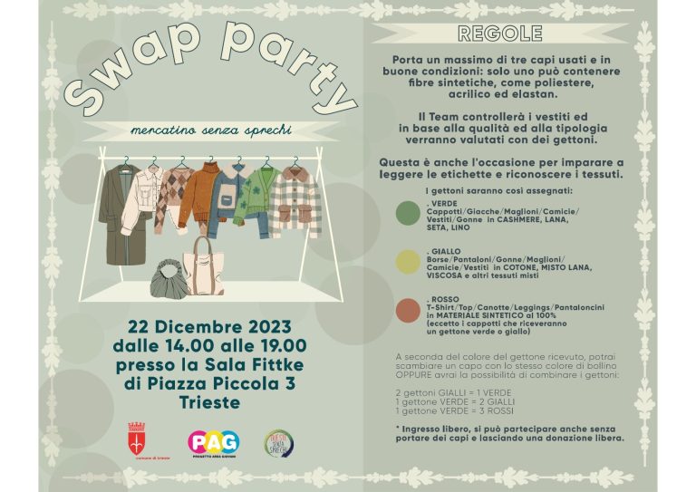 Trieste Senza Sprechi con il sostegno del PAG – Progetto Area Giovani del Comune diTrieste organizza lo swap di Natale venerdì 22 dicembre dalle 14 alle 18 presso