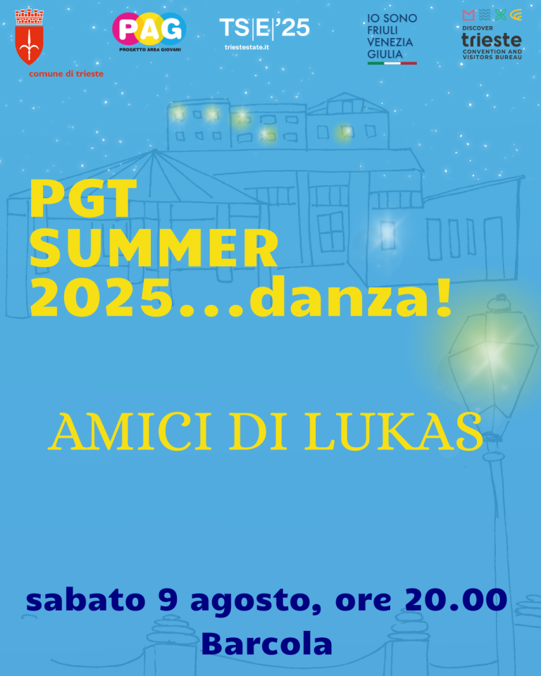 ORE 20.00, FONTANA DELL A PINETA DI BARCOLA, DANZA CON GLI AMICI DI LUKAS Ancora tanta danza al PGTSummer25!! Gli Amici di Lukas si allenano da anni al