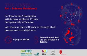 Per due settimane 5 artisti rumeni esplorano Trieste Città Europea della Scienza, vieni a incontrarli! La residenza “The Unseen” è un progetto dell’associazione rumena Scientifica